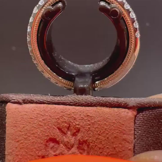 This ring features 0.64 Carats total diamond weight of Round Natural Mined Diamonds in a straight Band going 3/4 way around ring. This ring is lined in rose gold on the inside.