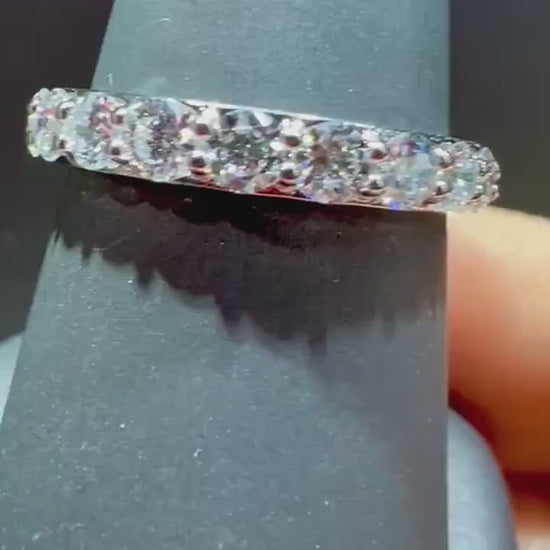 This ring features 11 Round Lab Grown prong set Diamonds in a straight band halfway around.