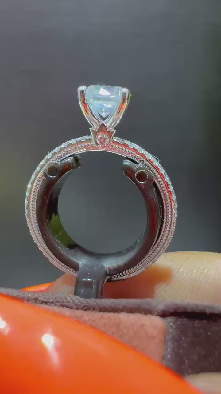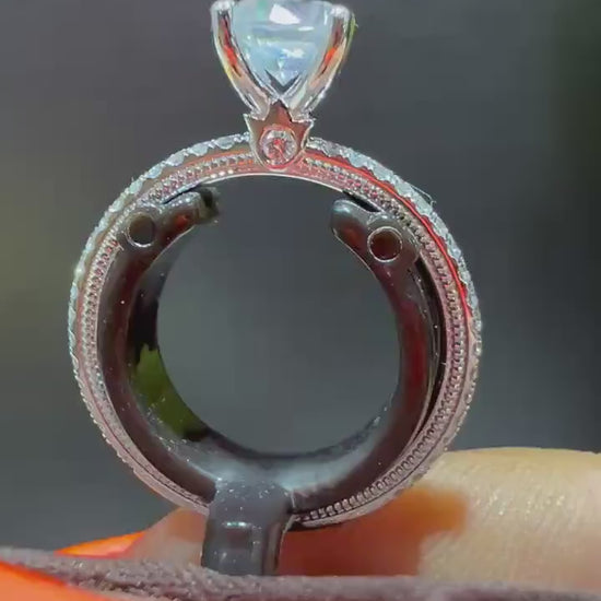 A flawless and refined look on a classic silhouette-TR120-R4 is forged under extreme pressure and pushes the limits of craftsmanship. This ring features our hand sculpted Signature Verragio beading and impeccable diamond setting on the band to perfectly highlight your choice of center stone.