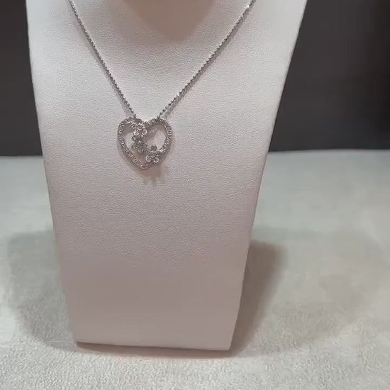 14K White Gold Natural Diamond Flower Heart Necklace - 0.23 Carats