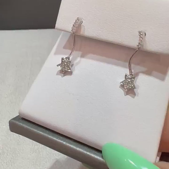 14K White Gold Diamond Star Dangle Earrings: Genuine Natural Diamonds