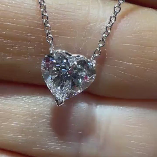 14K Heart Shape 2.00 Carat Lab Grown IGI Certified Diamond Solitaire Necklace: Adjustable