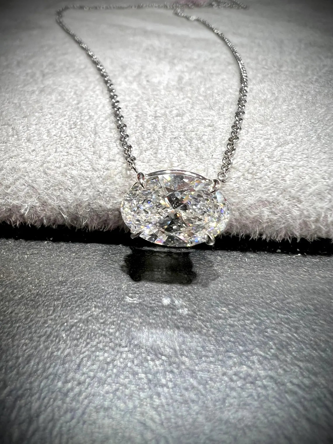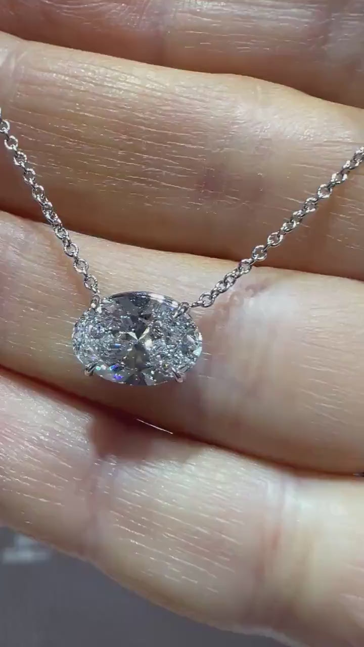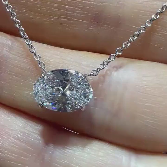 14K Oval 2.00 Carat Lab Grown IGI Certified Diamond Solitaire Necklace: Adjustable