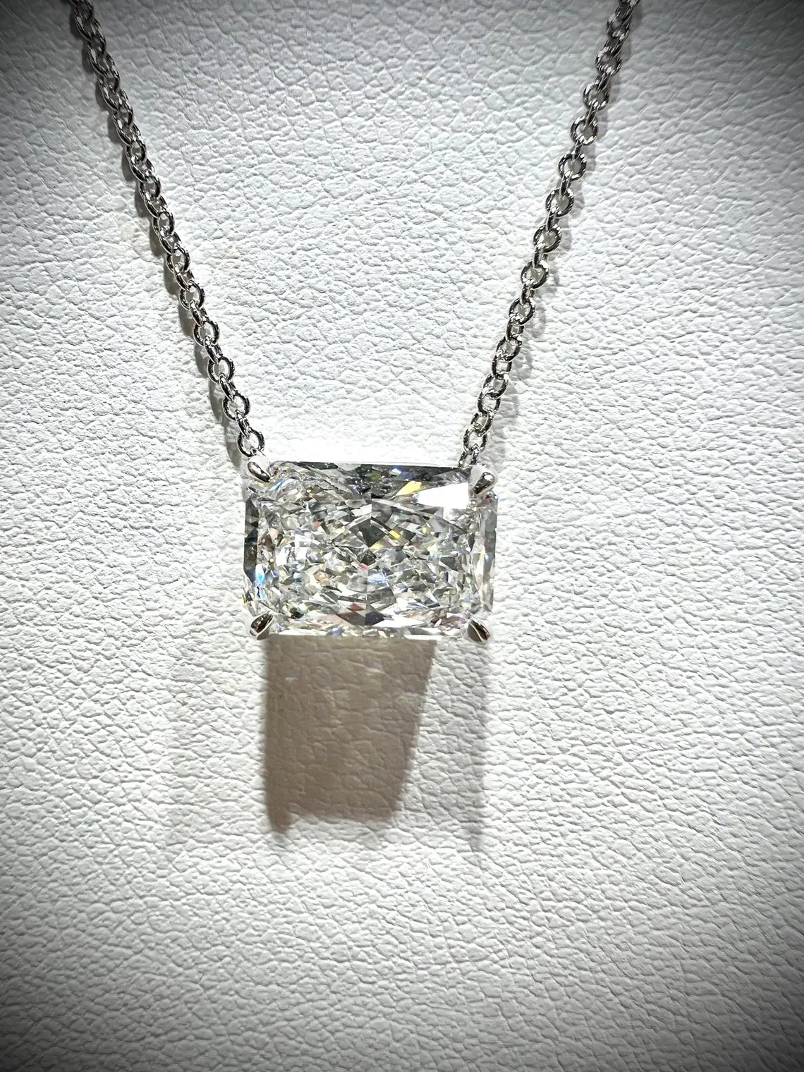 14K White Gold Certified 2.58 Carat Lab Grown Radiant Cut Diamond Solitaire Necklace