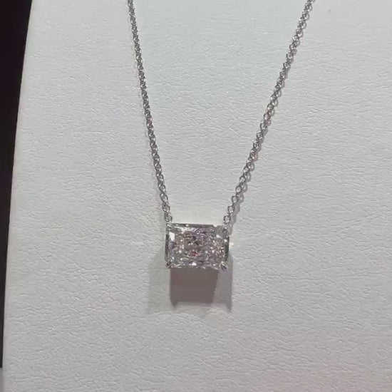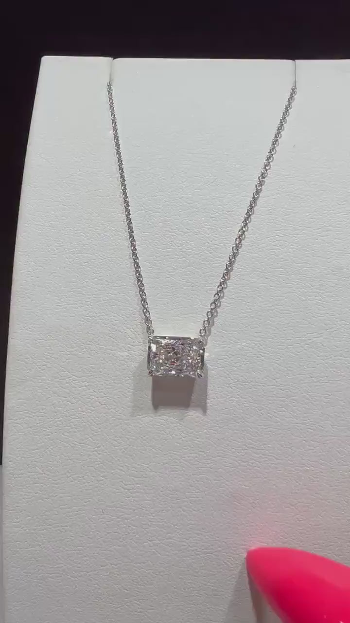 14K Radiant Cut 2.58 Carat Lab Grown IGI Certified Diamond Solitaire Necklace: Adjustable