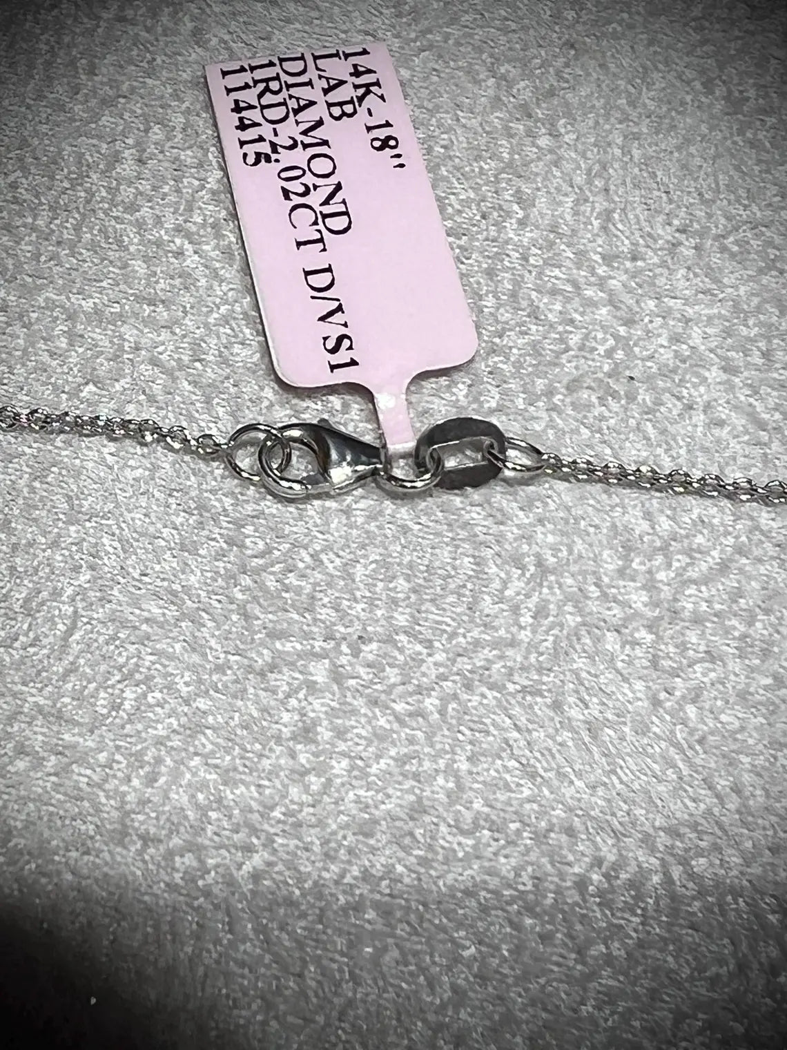 14K Round 2.02 Carat Lab Grown IGI Certified Diamond Solitaire Necklace: Adjustable