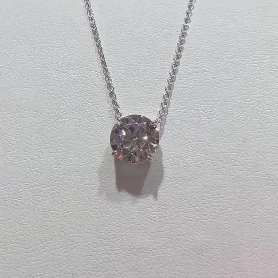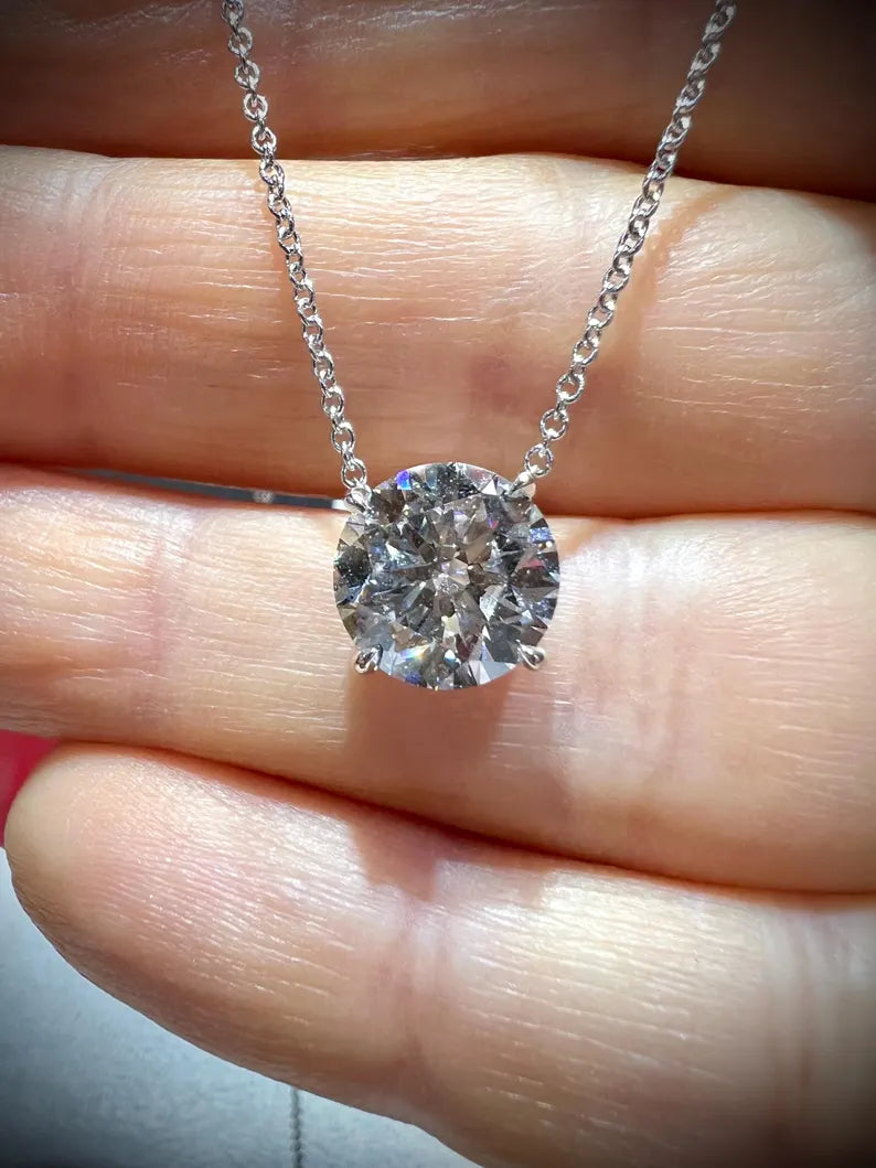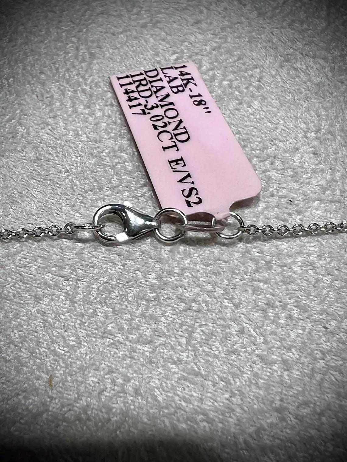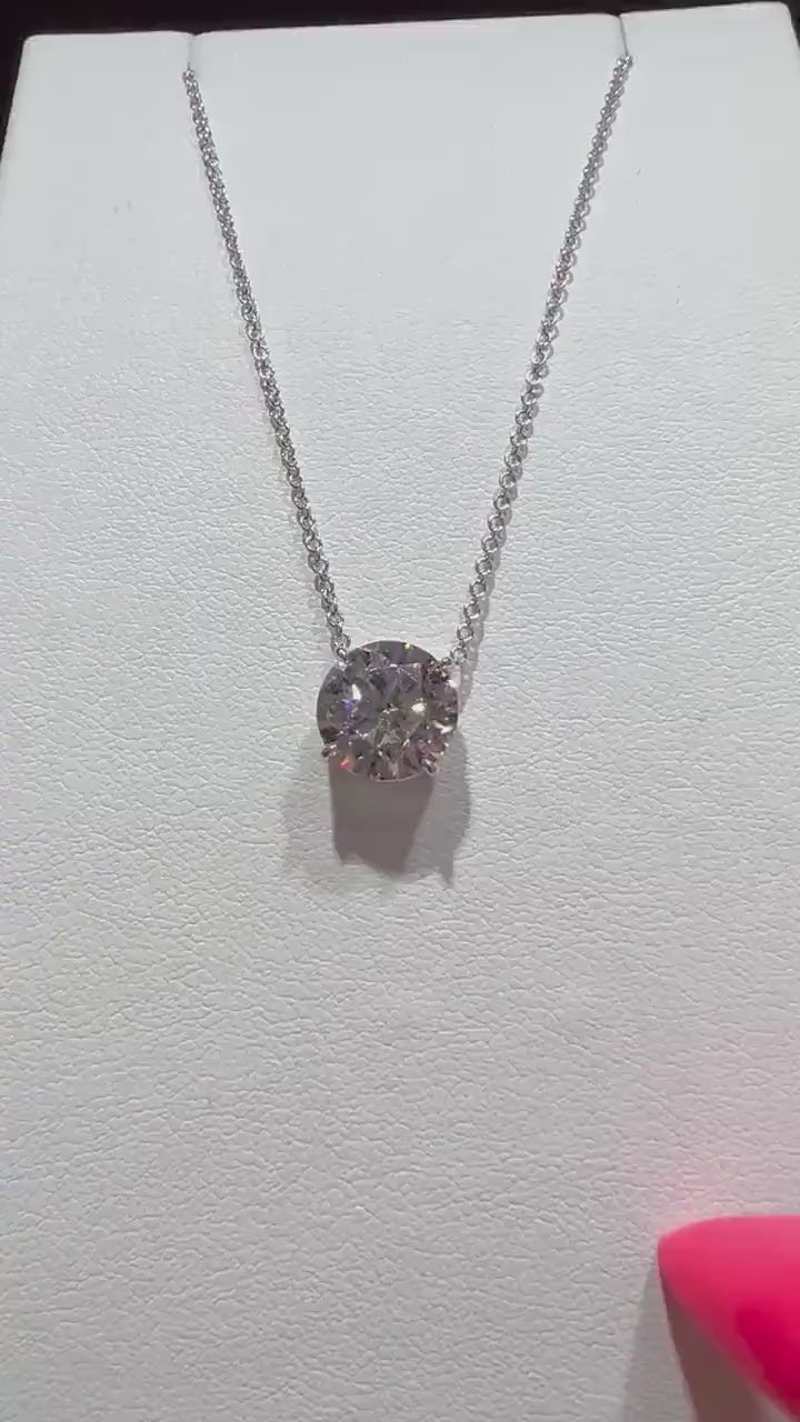 14K Round 3.02 Carat Lab Grown IGI Certified Diamond Solitaire Necklace: Adjustable