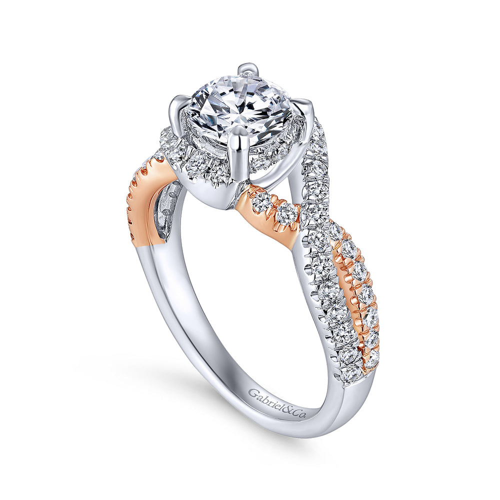 14K White-Rose Gold Round Twisted Diamond Engagement Ring