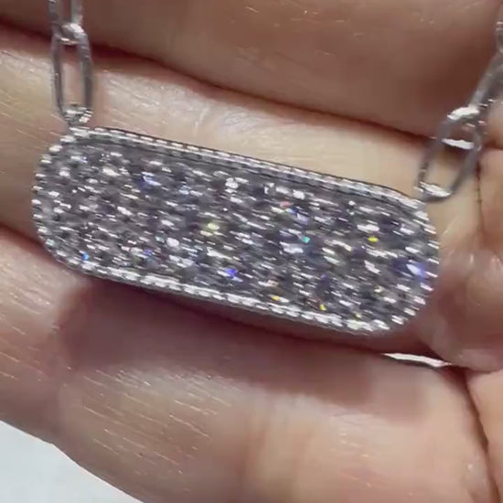 Lab Grown Diamond Bar Necklace: Sterling Silver Pavè Pendant