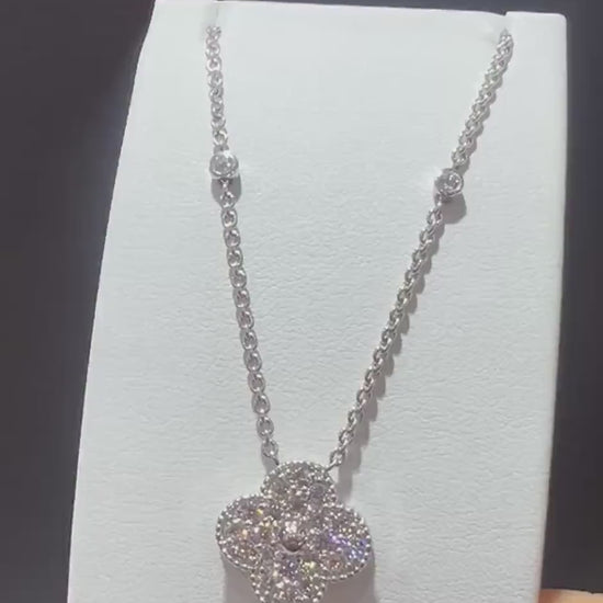 Diamond Clover Necklace 1.11 Carats: Sterling Silver, Lab Grown Diamonds