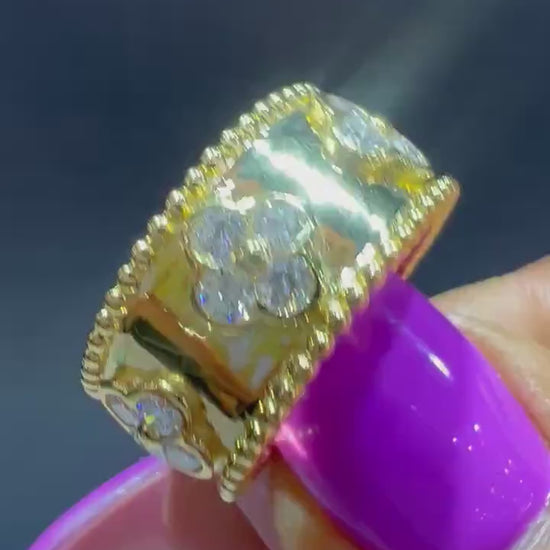 Diamond Clover Band Ring: 18K Gold Plated Sterling Silver, 1.50 Carat