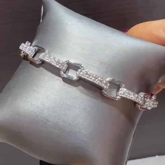 Lab Grown Diamond Link Bracelet: 2.75 Carats Sterling Silver, 7.75”
