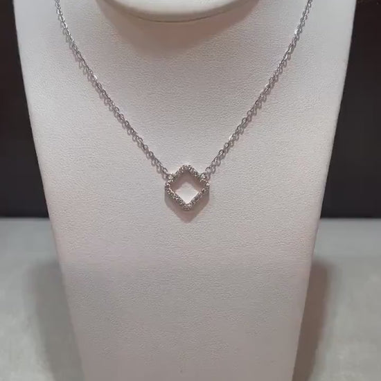 18K White Gold Natural Diamond Square Pendant Necklace: 0.25 Carats