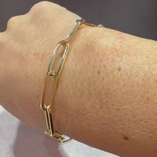 14K Yellow Gold Paperclip Link Bracelet - 7 Inch