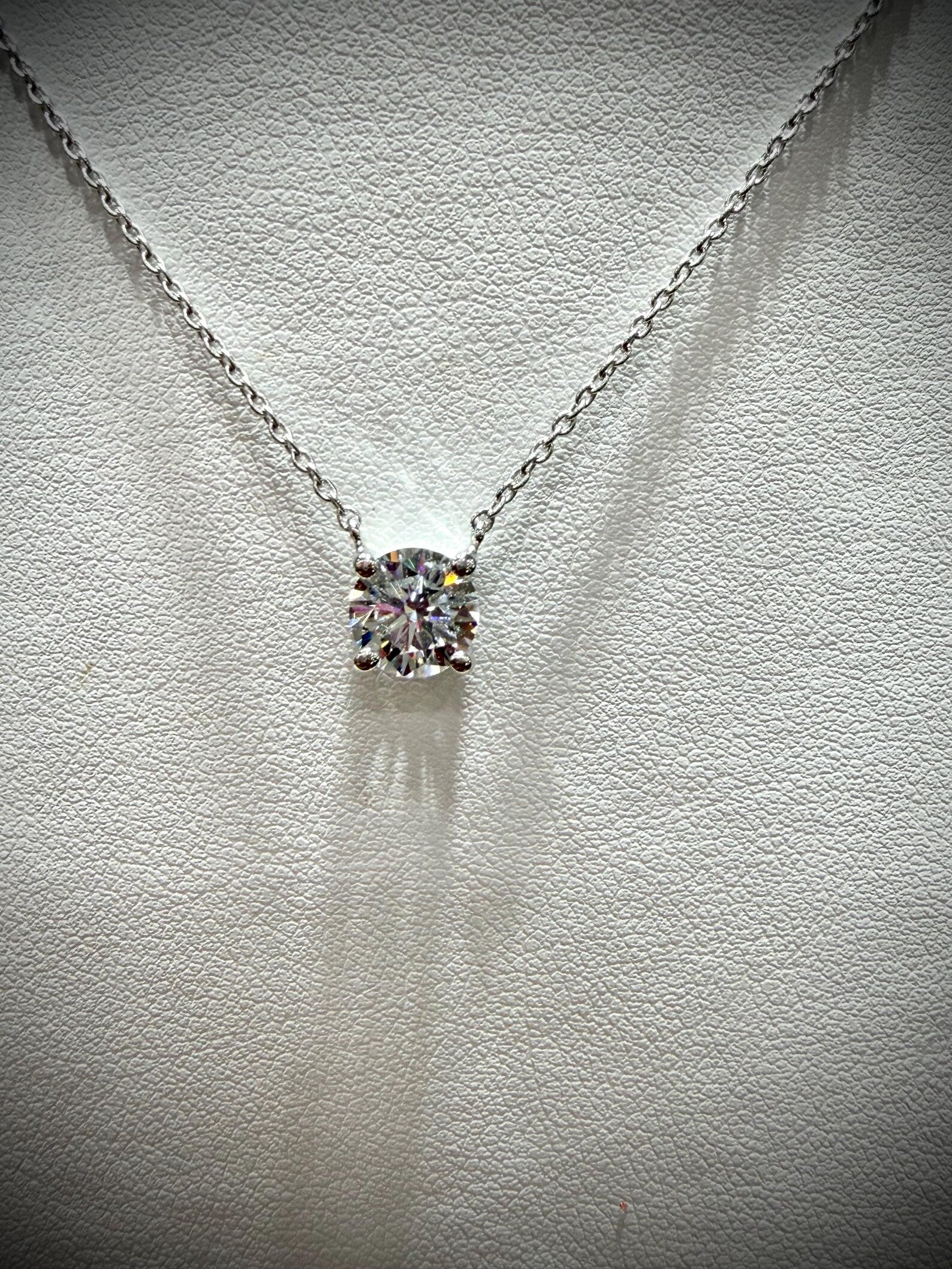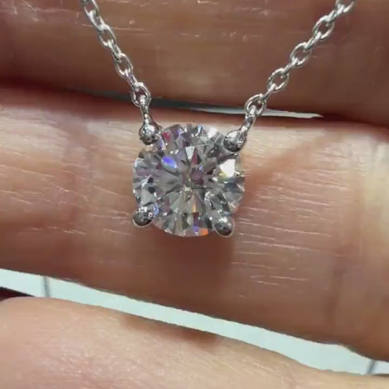 Round Lab Grown Diamond Solitaire Necklace 1.25ct: Sterling Silver 18”-20”